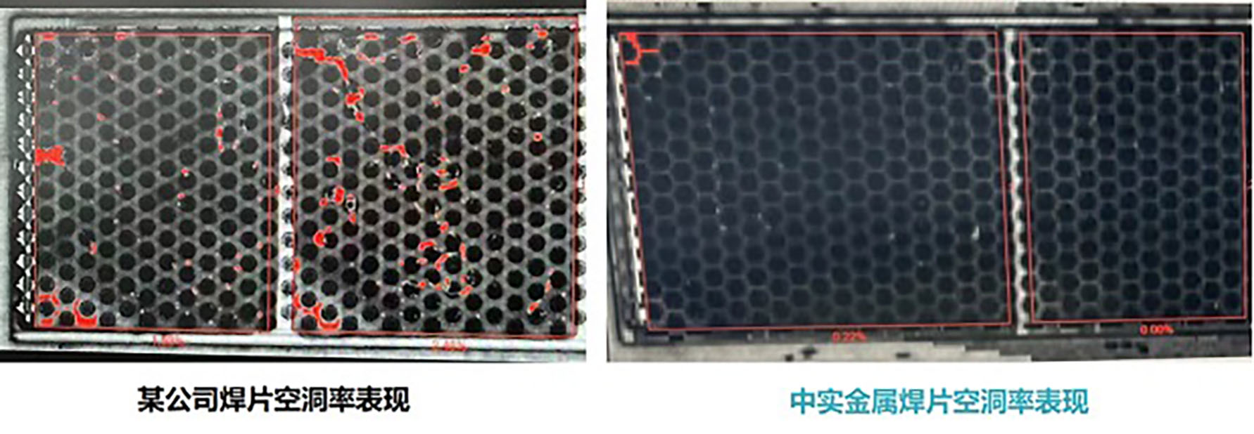 The following is the comparative experimental data, it can be seen that the real IGBT preformed solder effectively reduces the welding cavity rate, and the product stability performance is better.